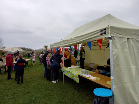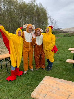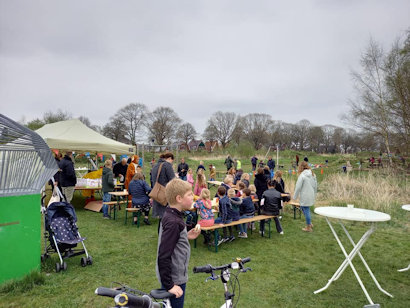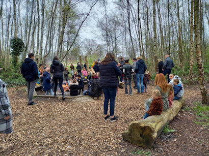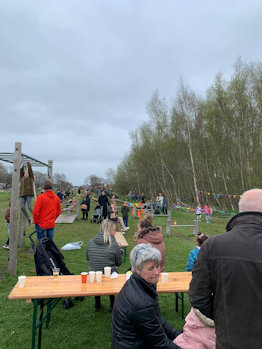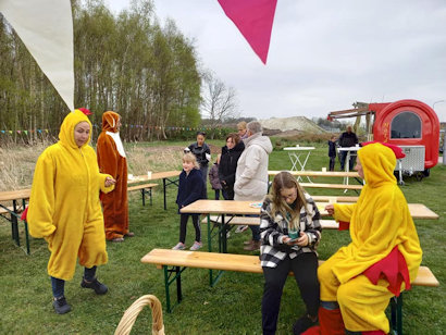 Er waren hapjes en drankjes en de kinderen konden eieren zoeken in het bos en kregen een verrassing van de Paashaas.